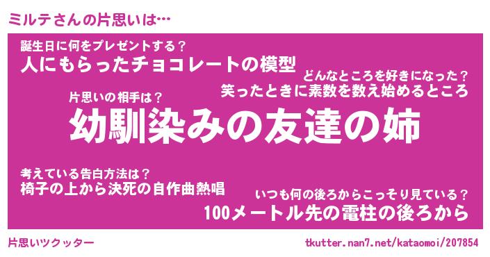 | ポケモン風あだ名 | 『ミルチュウ』『ミルテダネ』 |