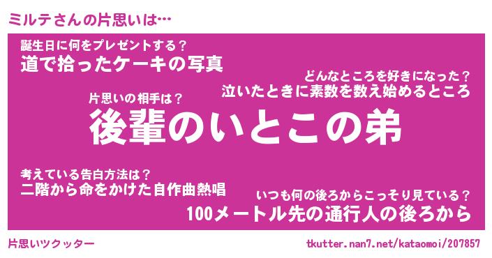 | ヒーロー風カッコイイあだ名 | 『スーパーミルテ』『ウルトラミルテマン』 |