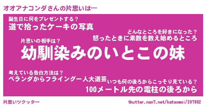 | 男性向けラノベタイトル風あだ名 | 『オオアナコンダの憂鬱』 |