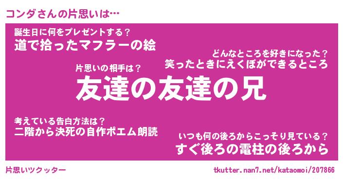 | ポケモン風あだ名 | 『コンチュウ』『コンダダネ』 |