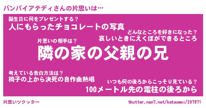 | 男性向けラノベタイトル風あだ名 | 『バンパイアテディの憂鬱』 |