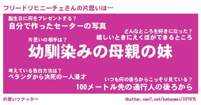 | 胡散臭い通販商品みたいなあだ名 | 『必ず成功するブレスレット…その名も「フリードリヒニーチェ」』 |