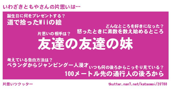 | 胡散臭い通販商品みたいなあだ名 | 『億万長者になれる霊験あらたかなお札…その名も「いわざきともや」』 |