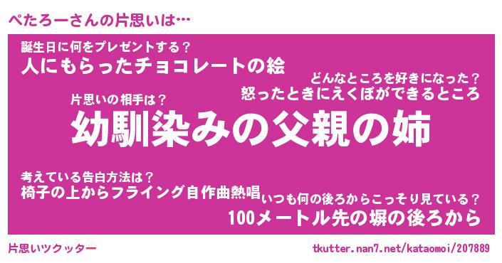 | 意味不明あだ名 | 『ペロリンぺたろー』『永久保存ぺたろー』 |