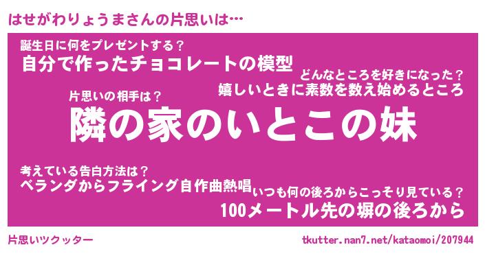 | 胡散臭い通販商品みたいなあだ名 | 『モテモテ間違いなし水晶球…その名も「はせがわりょうま」』 |
