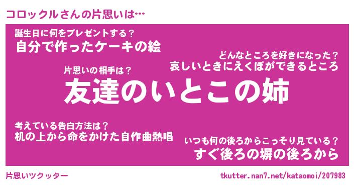 | 自動車の名前っぽいあだ名 | 『コロティマ』『コクア』『コント』 |