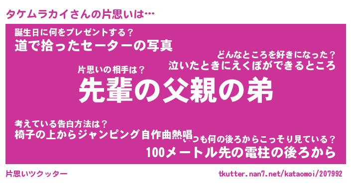 | ツイッター | タケムラカイさんのツイッターID『katatsumuri_idle』 |