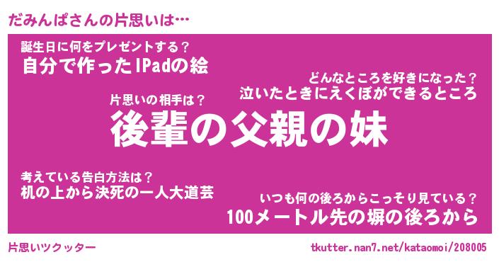 | 意味不明あだ名 | 『ペロリンだみんぱ』『永久保存だみんぱ』 |