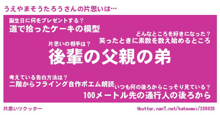 | ツイッター | うえやまそうたろうさんのツイッターID『dendenmushi_idle』 |