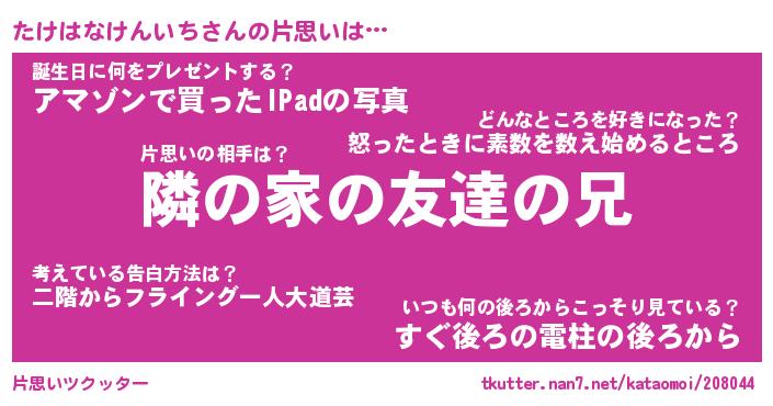 | 男性向けラノベタイトル風あだ名 | 『たけはなけんいちの憂鬱』 |