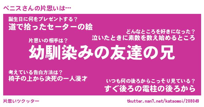 | ヘコむあだ名 | 『ペニっふぃ~』『なまこ酢』 |