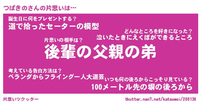 | ヘコむあだ名 | 『つばにゅー』『豆乳』『つばっ子』 |