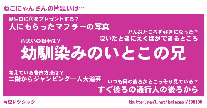 | 胡散臭い通販商品みたいなあだ名 | 『必ず成功する霊験あらたかなお札…その名も「ねこにゃん」』 |