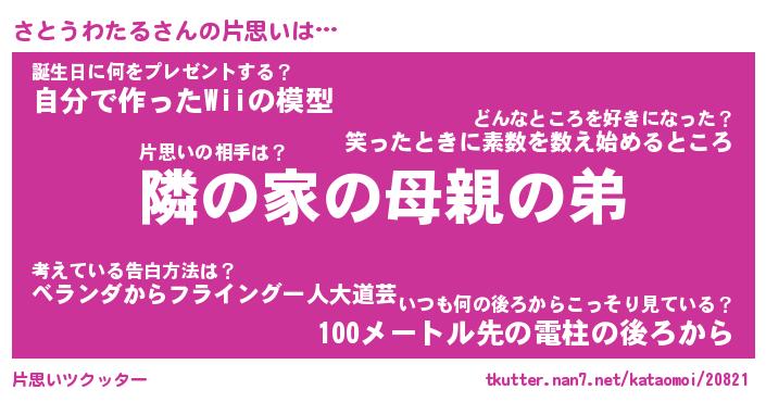 | 胡散臭い通販商品みたいなあだ名 | 『必ず成功するブレスレット…その名も「さとうわたる」』 |