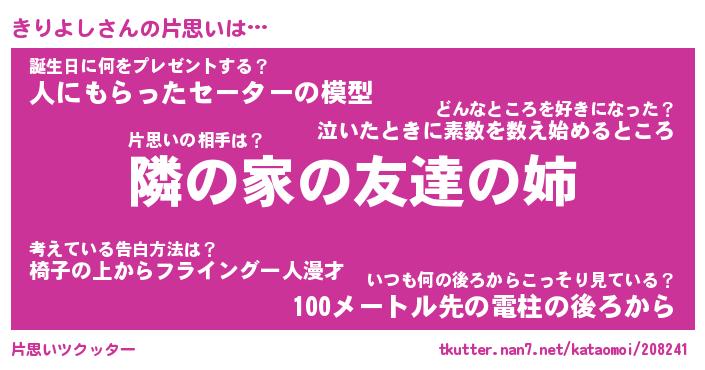 | ヘコむあだ名 | 『きりもー』『つくし』『きりお』 |