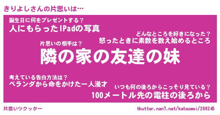 | 男性向けラノベタイトル風あだ名 | 『きりよしの憂鬱』 |