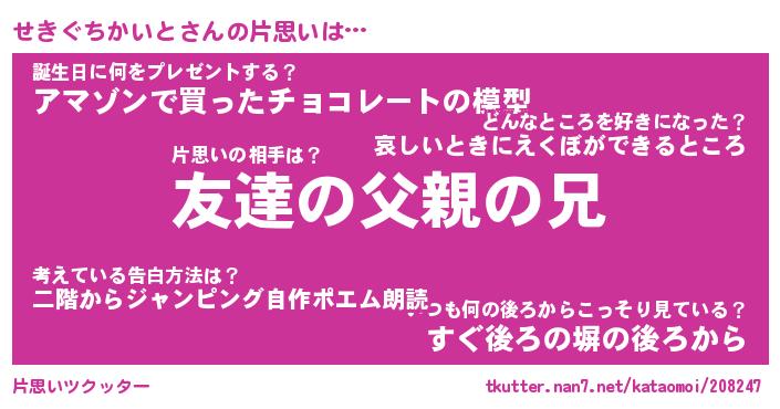 | 意味不明あだ名 | 『ペロリンせきぐちかいと』 |