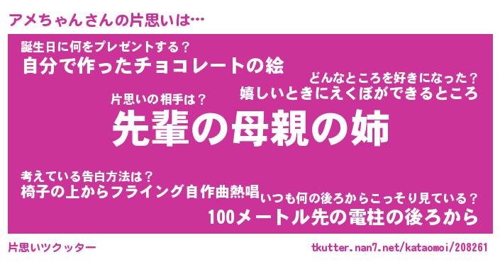 | ヘコむあだ名 | 『アメにー』『つくし』『アメ太郎』 |