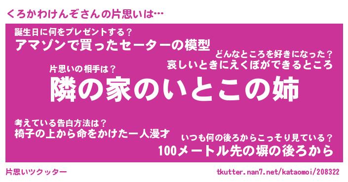 | 胡散臭い通販商品みたいなあだ名 | 『モテモテ間違いなし霊験あらたかなお札…その名も「くろかわけんぞ」』 |