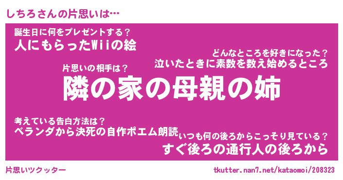 | 男性向けラノベタイトル風あだ名 | 『しちろの憂鬱』 |