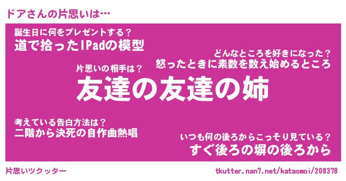 | ポケモン風あだ名 | 『ドアチュウ』『ドアダネ』『ヒドア』 |