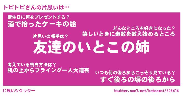 | 意味不明あだ名 | 『ペロリントピトピ』『永久保存トピトピ』 |