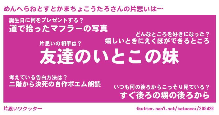 | ヘコむあだ名 | 『めんにゅー』『豆乳』『めんっぺ』 |