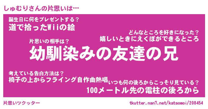 | ヘコむあだ名 | 『しゅもー』『豆乳』『しゅを』 |