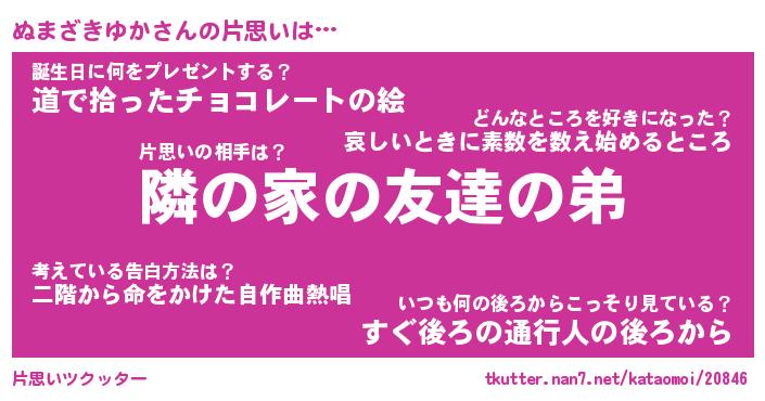 | 胡散臭い通販商品みたいなあだ名 | 『必ず成功する霊験あらたかなお札…その名も「ぬまざきゆか」』 |