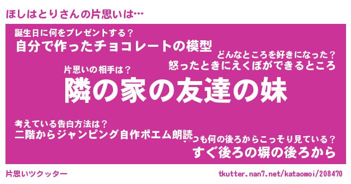 | ファンタジー風あだ名 | 『ホシフェル』『エターナルホシハトリー』 |