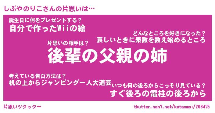 | ヘコむあだ名 | 『しぶにゅー』『つくし』『しぶっぺ』 |
