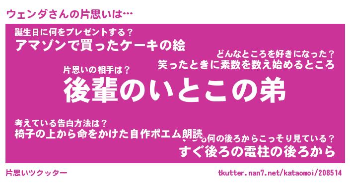 | 意味不明あだ名 | 『ペロリンウェンダ』『永久保存ウェンダ』 |