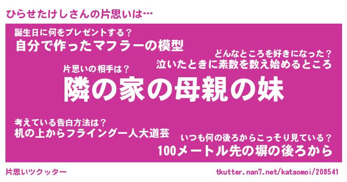 | 肩書あだ名 | 『ひらせたけしCEO』『ひらせたけし大統領』 |