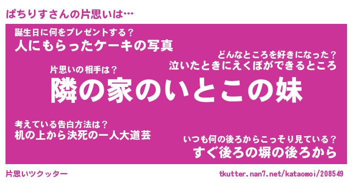 | 意味不明あだ名 | 『ペロリンぱちりす』『永久保存ぱちりす』 |