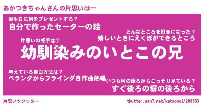 | ヘコむあだ名 | 『あかもー』『豆乳』『あかっ子』 |