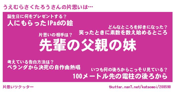| 女子向けラノベタイトル風あだ名 | 『うえむらさくたろう姫と円卓の騎士』 |