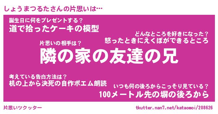 | 男性向けラノベタイトル風あだ名 | 『しょうまつるたの憂鬱』 |