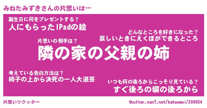 | 胡散臭い通販商品みたいなあだ名 | 『モテモテ間違いなし水晶球…その名も「みねたみずき」』 |
