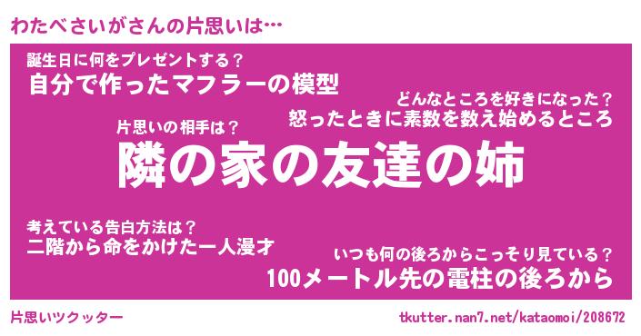 | 胡散臭い通販商品みたいなあだ名 | 『必ず成功する霊験あらたかなお札…その名も「わたべさいが」』 |