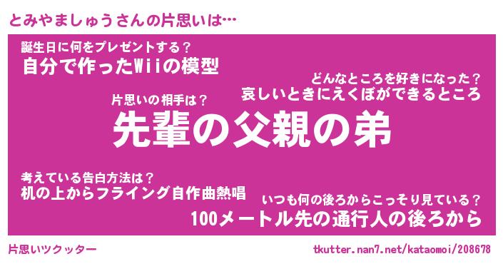 | ポケモン風あだ名 | 『トミチュウ』『トミヤダネ』 |