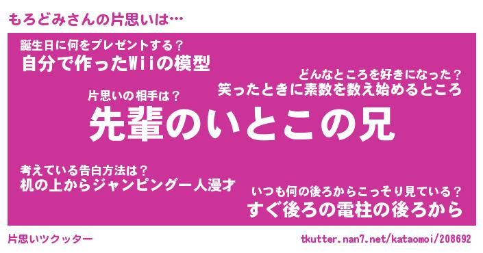| ヘコむあだ名 | 『もろにゅー』『酢こんぶ』『もろを』 |