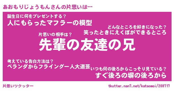 | 男性向けラノベタイトル風あだ名 | 『あおもりじょうもんの憂鬱』 |