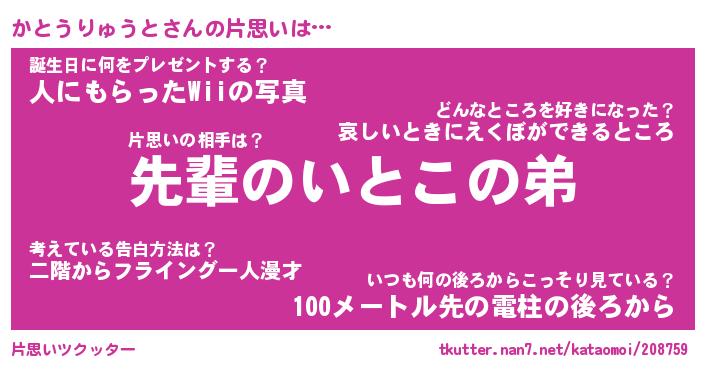 | 男性向けラノベタイトル風あだ名 | 『かとうりゅうとの憂鬱』 |