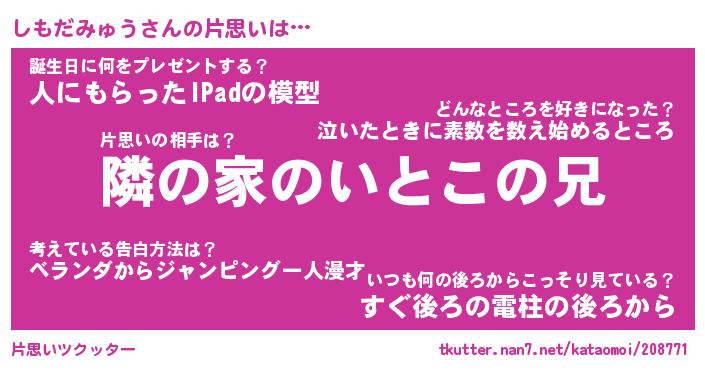 | ヘコむあだ名 | 『しももー』『牛乳』『しもっぺ』 |