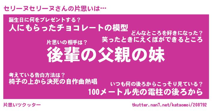 | ポケモン風あだ名 | 『セリチュウ』『セリーダネ』 |
