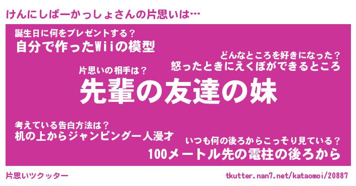 | ヘコむあだ名 | 『けんっふぃ~』『つくし』『けんを』 |