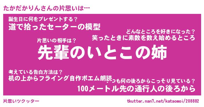 | 女子向けラノベタイトル風あだ名 | 『たかだかりん姫と円卓の騎士』 |