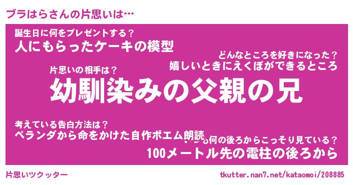 | ヘコむあだ名 | 『ブラふぇ~』『牛乳』『ブラ太郎』 |