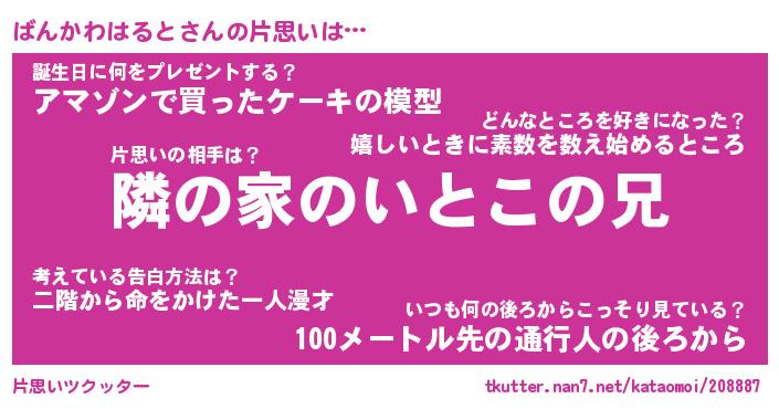 | 胡散臭い通販商品みたいなあだ名 | 『モテモテ間違いなし水晶球…その名も「ばんかわはると」』 |