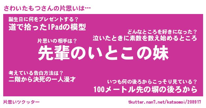 | 胡散臭い通販商品みたいなあだ名 | 『モテモテ間違いなし水晶球…その名も「さわいたもつ」』 |